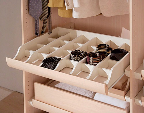 Спробуйте змоделювати ситуацію, при якій ви, одягнувшись та взувшись, раптом розумієте, що забули доповнити свій образ якимось аксесуаром (до прикладу, шарф, шапка, рукавиці та ін.). Очевидно, що вже будучи готовим до виходу, не дуже хочеться повертатись до шафи у пошуках бажаної речі. Саме тому рекомендується розміщувати універсальні аксесуари, потреба в яких може виникнути щодня, десь «під рукою». Краще всього, якщо цим місцем стануть закриті полиці або гачки, розміщені на рівні грудей.