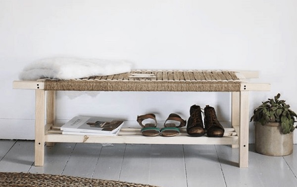 Існують також тумби для взуття не лише з різноманітними типами полиць та варіантами їх розміщення, а й з місцем для сидіння для того, щоб одягати чи знімати взуття було зручніше. Такі міні-диванчики можуть мати внутрішню нішу, що може слугувати додатковим місцем для зберігання речей.