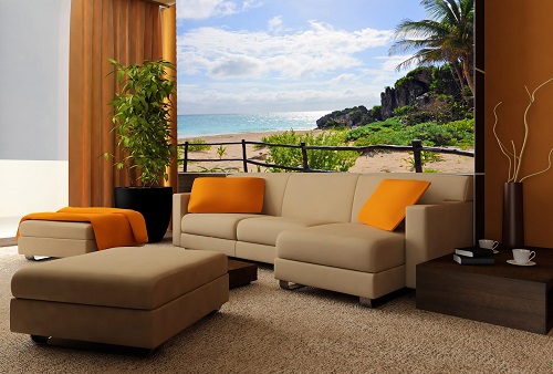 - создают фальш-декор, элементом которого может выступать окно, терраса, камин и др.;
