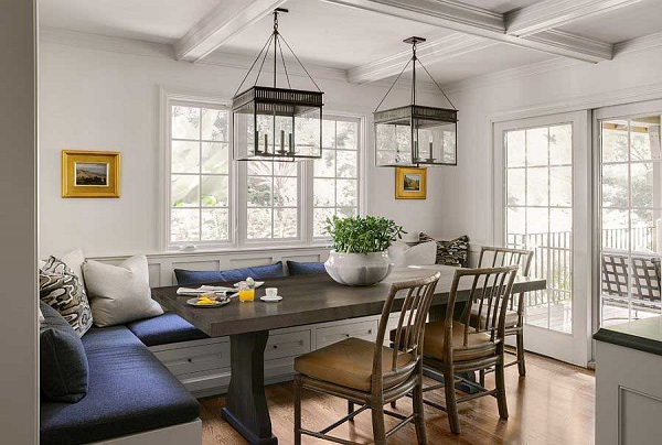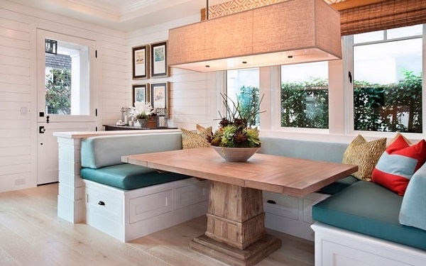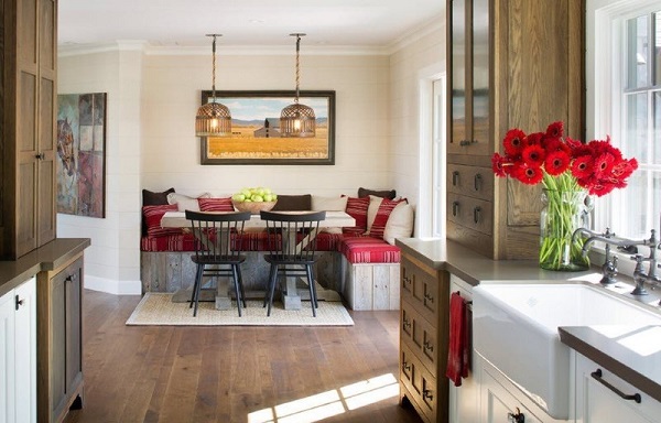 Мебель должна сочетаться с общим интерьером комнаты. Поэтому при выборе уголка для кухни рекомендуется ориентироваться на цвет стен и подбирать вариант с обивкой в тонах, которые ему соответствовали бы. Стоит также учитывать стилистику оформления: если кухня в классическом стиле, то удачным ее дополнением станет уголок с элементами из дерева, а если в стиле хай-тек - то с каркасом из металла или текстилем с геометрическим узором.