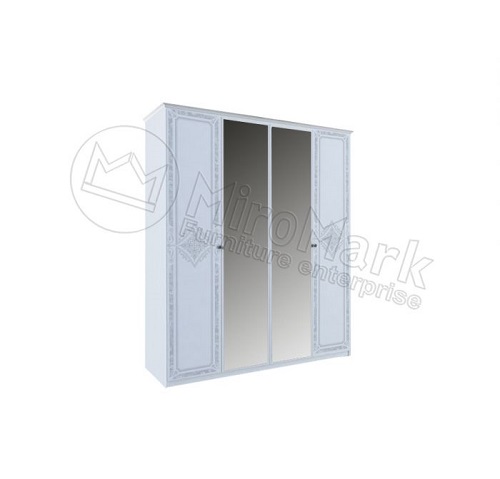 Глянцевые поверхности дверей и зеркала почти в полный рост - это сочетание, о котором мечтают многие. Мебельная фабрика «Миромарк» воплотила в жизнь пожелания своих клиентов в виде этого шкафа и ряда другой мебели из линейки гарнитура для спальни и гостиной.