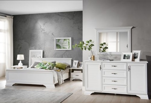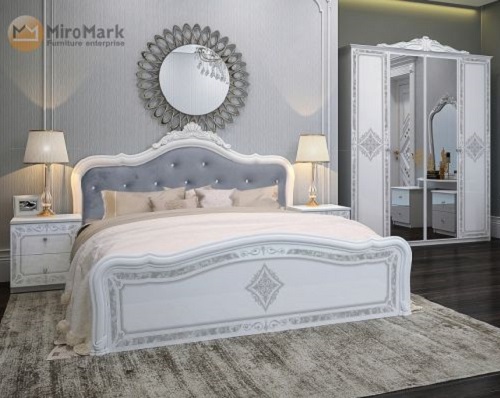 Стильный гарнитур в белом цвете позволит вам почувствовать роскошь и комфорт королевского уровня. Комплект мебели такого типа станет прекрасным дополнением классического дизайна спальной комнаты.